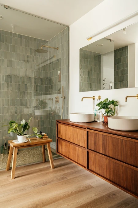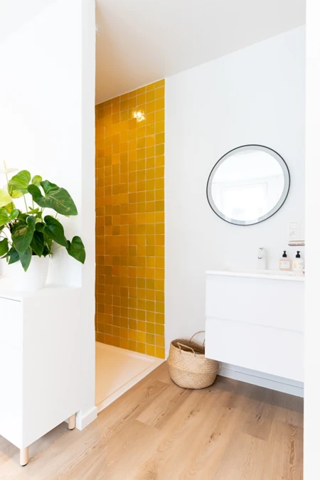 Das Badezimmer ist der Ort, an dem du den Tag beginnst und beendest, an den du kommst, um dich kurz zu erfrischen oder ganz zu entspannen. Damit du diesen Raum ganz nach deinen Wünschen gestalten kannst, bieten wir eine große Auswahl an Optionen für unsere Vinylböden. Wähle eine Farbe und ein Design, die zu deiner Einrichtung passen Warm und authentisch, dunkel und gemütlich… In den Vinylkollektionen von Parquetvinyl findest du alle möglichen Farben und Designs, die in jeden Einrichtungsstil passen. Lass dich von unseren Kollektionen inspirieren – an Auswahl mangelt es nicht! Die passende Verlegeart für dein Badezimmer Gerade Vinylplanken, Vinylfliesen oder Fischgrätplanken aus Vinyl – du hast die Wahl. Lass dich ganz von deinem bevorzugten Einrichtungsstil leiten, denn unsere drei Arten von Vinylböden eignen sich jeweils perfekt für das Badezimmer.
